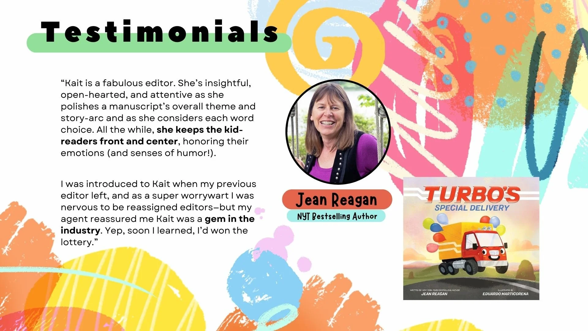 I’ll give you big picture notes on your manuscript. This is not an edit–it’s more of a reaction and an overview of what contributed to that reaction in a few paragraphs. I’ll share where your work fits in the market and potential feedback you might hear from an agent or an editor and their respective publishing team (Publicity, Marketing, Sales–there’s a lot of cooks in the kitchen weighing in on what works or doesn’t!). I’ll also advise on what your next steps should be!